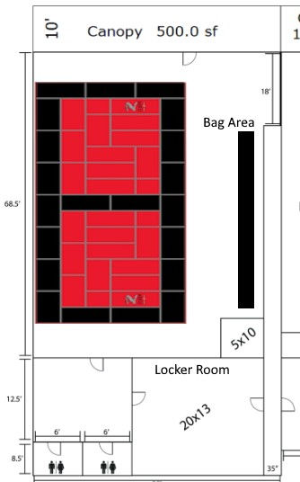 The building is still in progress, with mats expected to be either 60x20 or 52x20 in size. The heavy bags and stand rack will be located in the far corner near the locker rooms. Additionally, there will be locker rooms at the back, complete with gear storage and two bathrooms for convenience.